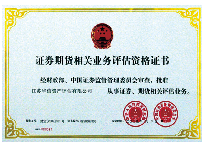 - 證券期貨相關業務評估資格證書